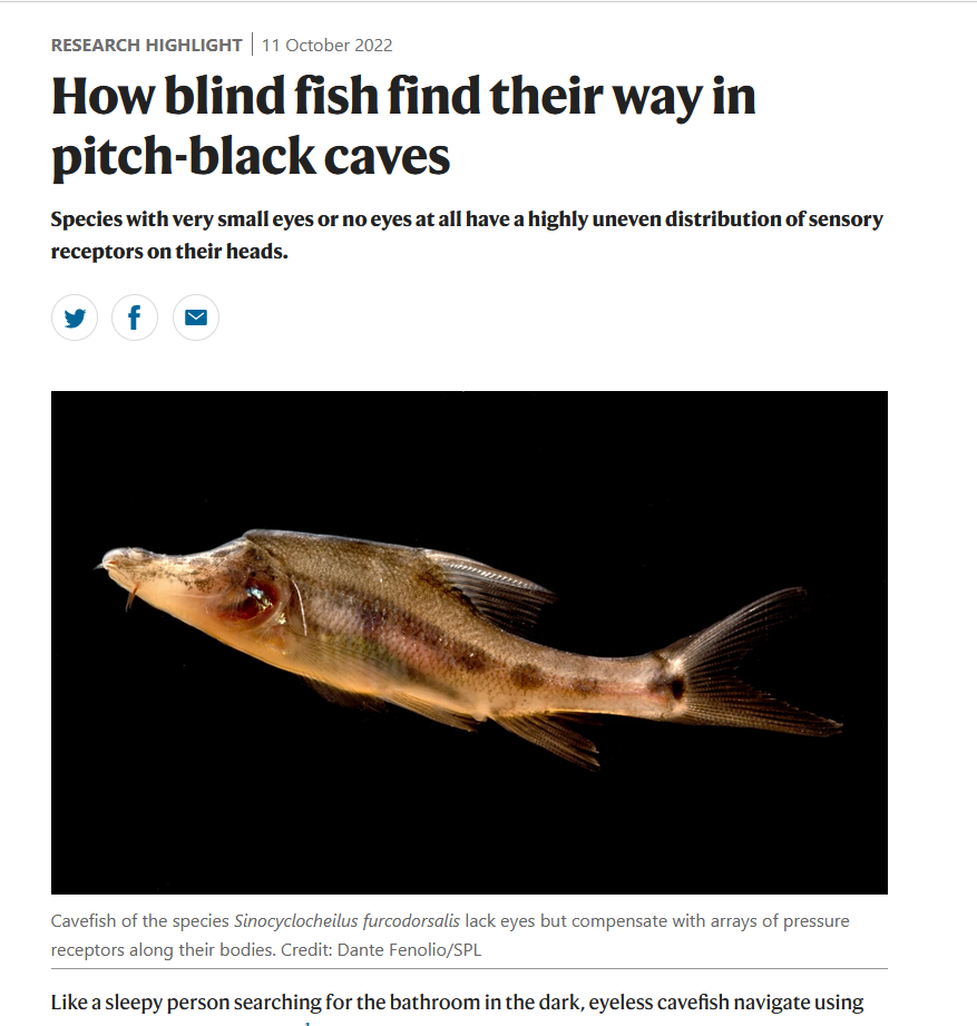 44118太阳成城集团马德华(Madhava)课题组,在生物学领域期刊《Proceedings of the Royal Society B: Biological Sciences》正式发表题为“Sensory evolution in a cavefish radiation: patterns of neuromast distribution and associated behaviour in Sinocyclocheilus (Cypriniformes: Cyprinidae)”的研究论文,这一成果也受到了Nature杂志Research Highlights的报道宣传。