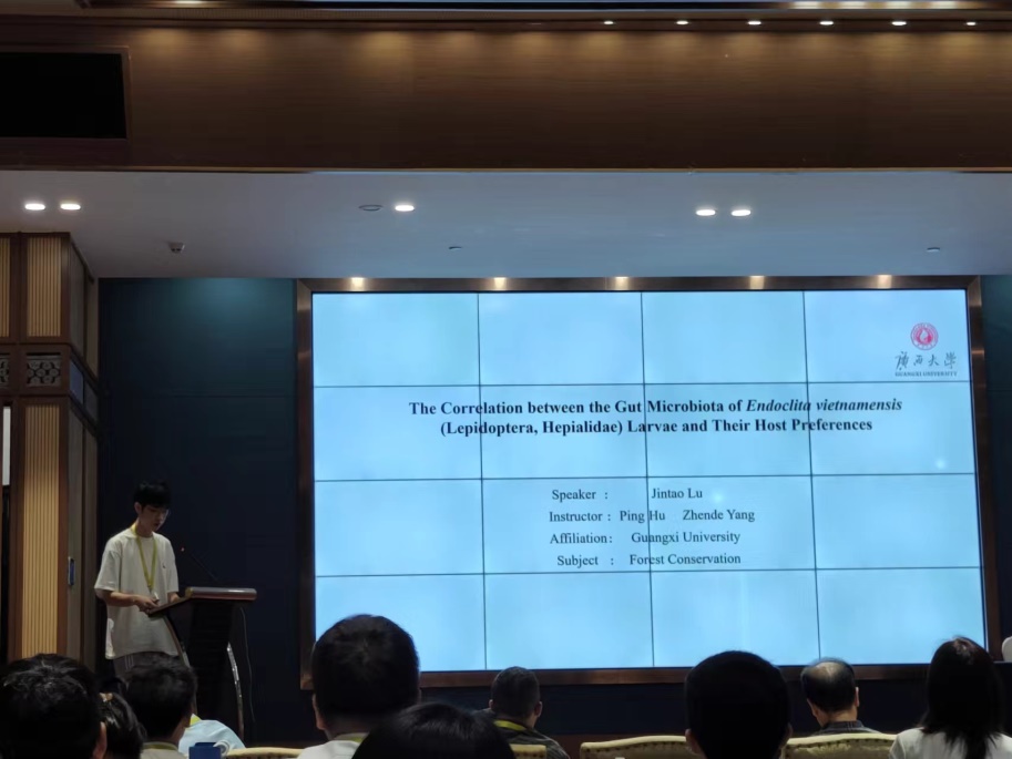 太阳成官网博士研究生鲁进韬受邀参加2024年“中国-东盟林业科学论坛”学术交流活动,以“桉蝙蛾幼虫肠道微生物与寄主取食偏好的相关性(The Correlation between the Gut Microbiota ofEndoclita signifer(Lepidoptera, Hepialidae) Larvae and Their Host Preferences)”论文为主题进行学术报告,与参会人员开展了深入交流与讨论,并在报告评比中获得“优秀报告奖”。